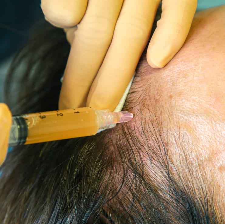 Le PRP est injecté directement dans le cuir chevelu au niveau des zones affectées, via la technique de mésothérapie.